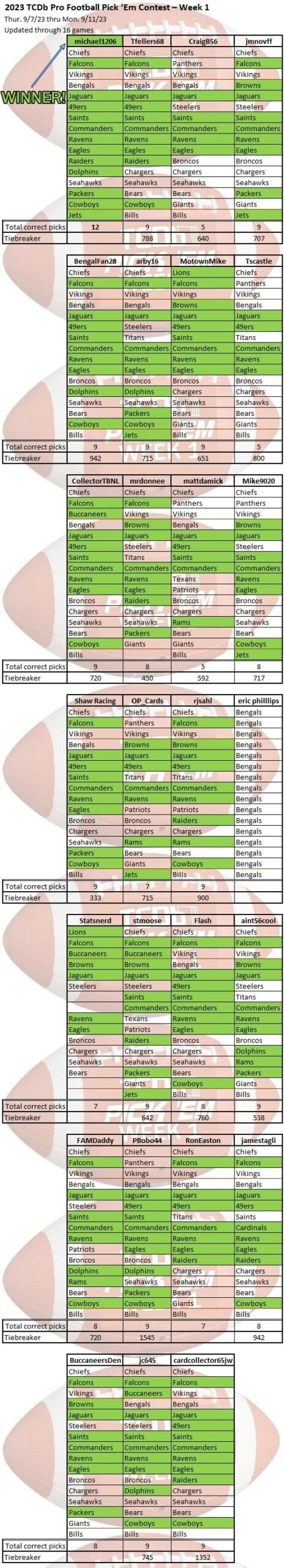 2023 TCDb Pro Football Pick ‘Em Contest |