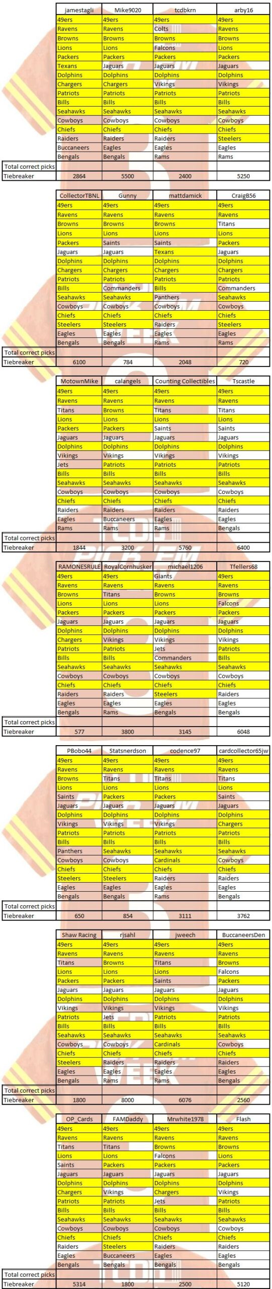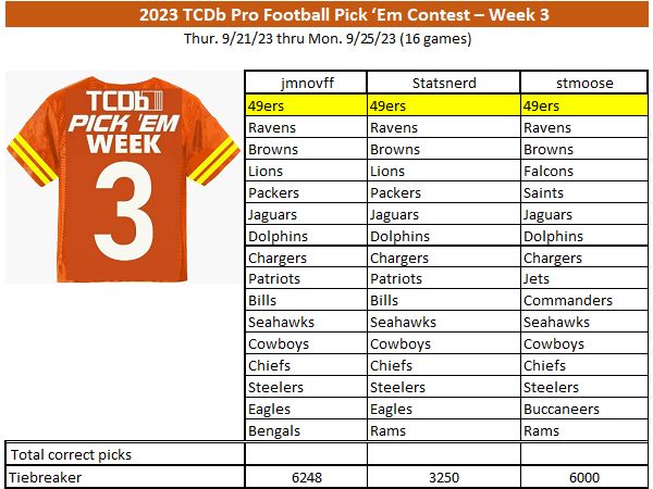 Week 3 Contest Link: https://www.tcdb.com/Giveaway.cfm/gid/88/2023-TCDb-Pro-Football-Pick-'Em---Week-3